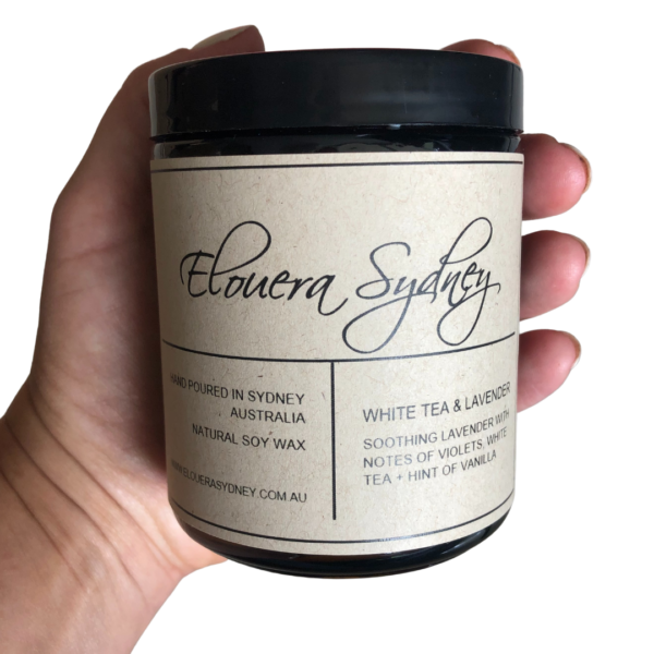 WHITE TEA & LAVENDER with notes of soothing lavender, violets, white tea + a hint of vanilla.