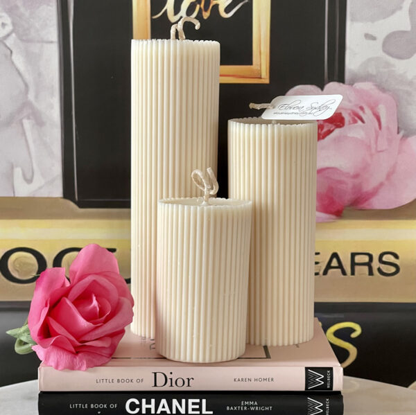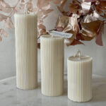 The three-piece corrugated pillar candles make a formidable statement piece. Use as a simple and elegant decor piece or watch them come alive once lit. This set is large and bold as they are crafted with more than 1kg of wax and is guaranteed to brighten up any space.