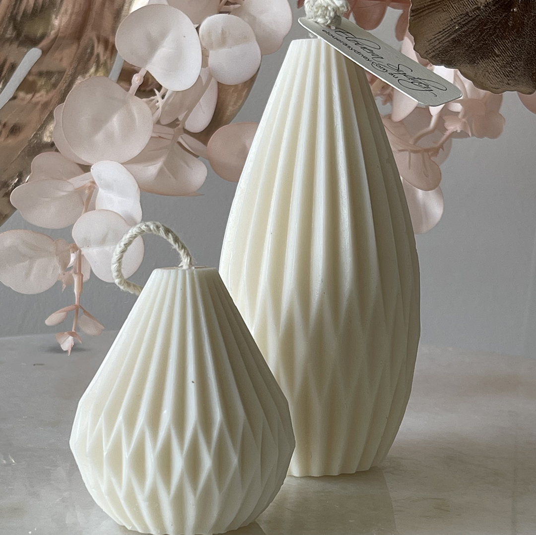 This truly is a piece of art, either leave as a statement piece or light. The Origami Pear Drip Candle is sure to compliment any setting.